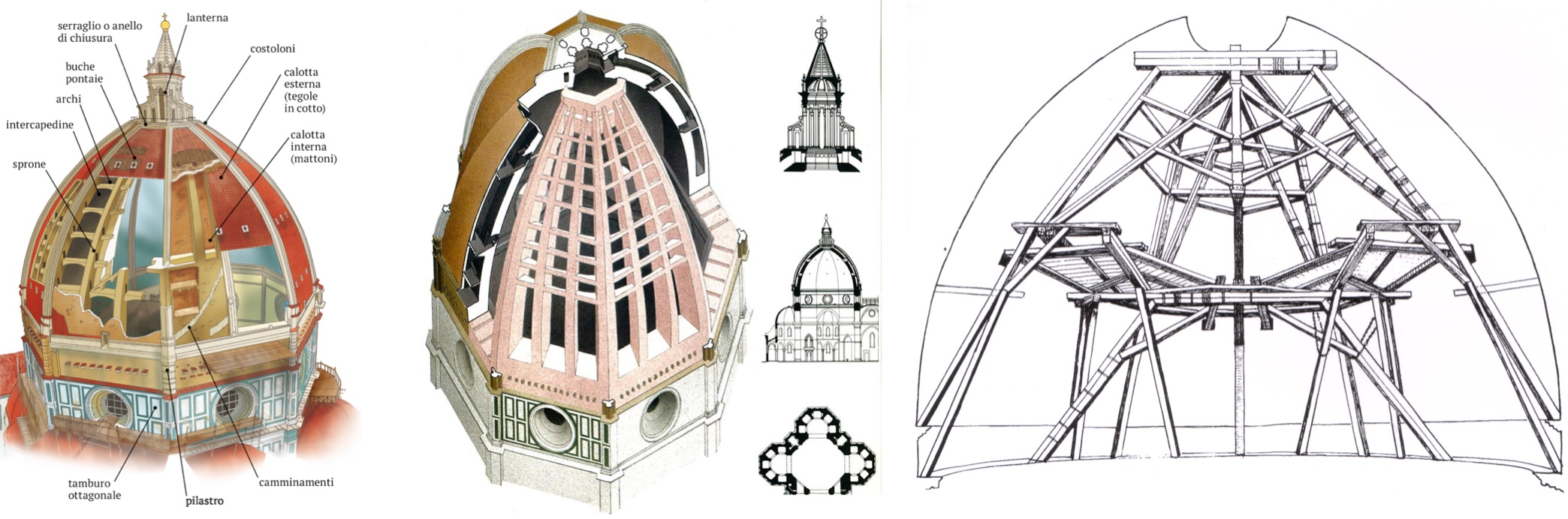Quella sensazione di stupore è esattamente la stessa che devono aver provato i primi visitatori attoniti della cupola del Duomo di Firenze progettata da Brunelleschi. La maggior parte di loro non poteva e non voleva neppure immaginare i calcoli e le impalcature che sostenevano la cupola, ma voleva solo ammirarla come un «miracolo»; un’illusione artistica che sfidava non solo la legge di gravità ma anche la ragione del pubblico impreparato che doveva credere nel divino entrando nel tempio di Dio.