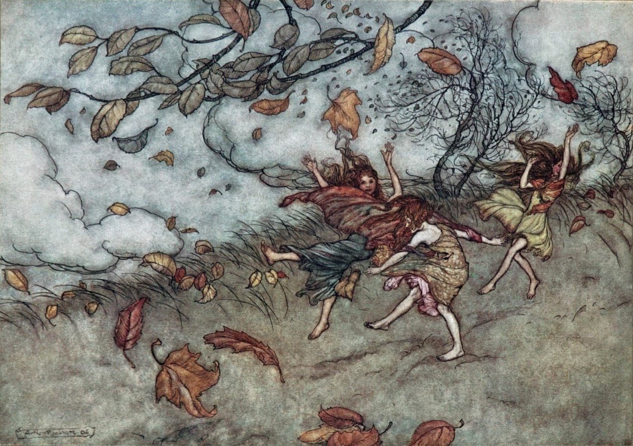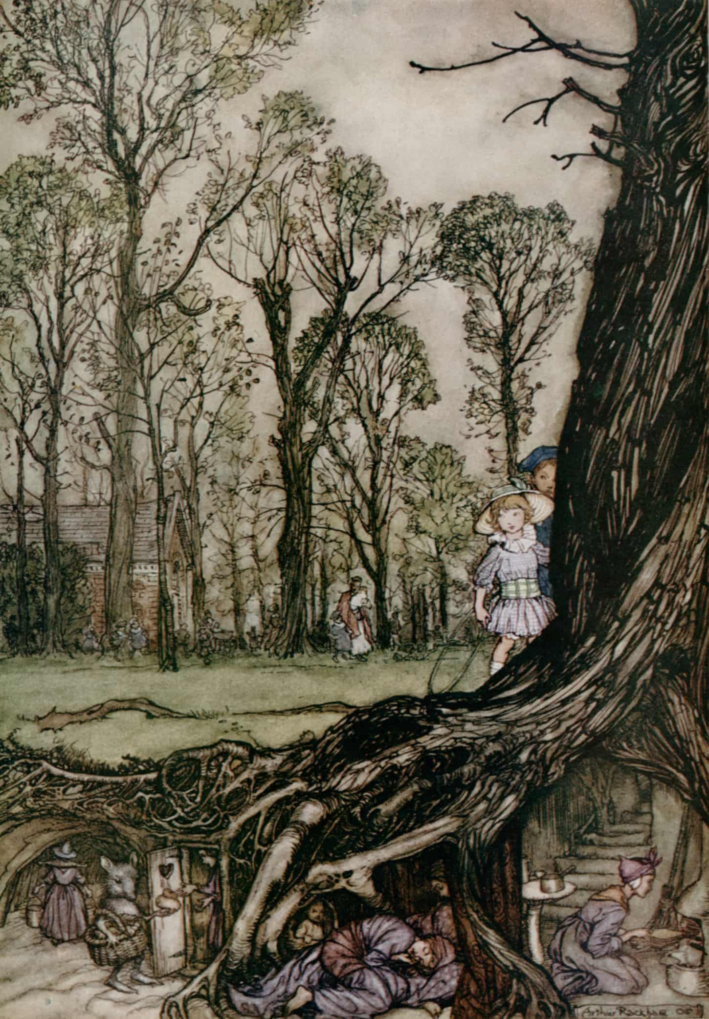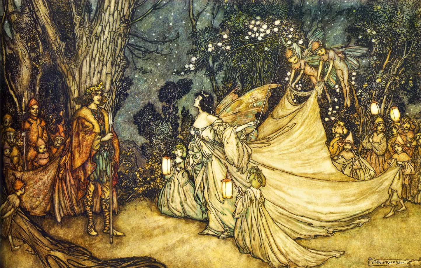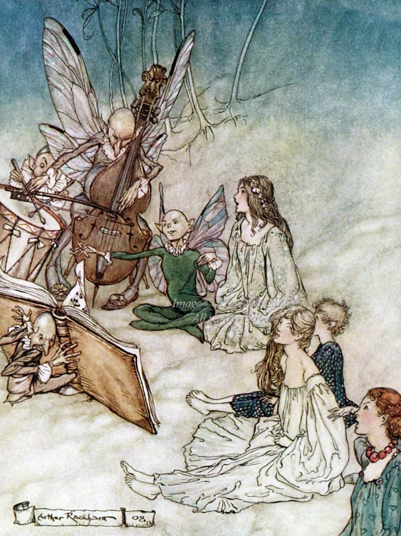 A questo punto del nostro viaggio nel Regno incantato non emergono più solo solo i protagonisti e le loro imprese straordinarie, ma anche le abitudini e i rituali che scandiscono la vita quotidiana, «ordinaria» del popolo delle fate e degli elfi; un popolo che vive non soltanto nei Giardini di Kensington animati da Barrie e Rackham, nei luoghi incantati shakespeariani del Sogno di una notte di mezza estate e de La Tempesta di Shakespeare, ma anche, ad esempio, nei luoghi non di meno fatati e incantati descritti da Rudyard Kipling nei suoi racconti dedicati a Puck il folletto (Puck of Pook’s Hill).