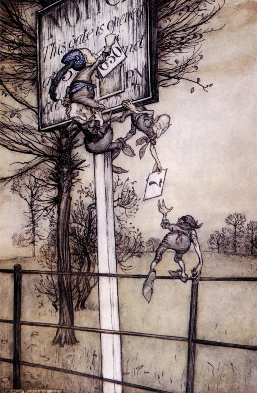 L’assunzione di una prospettiva antropologica, oltre che artistica, per continuare a visitare l’universo invisibile delle minuscole creature fatate, aiuta a comprendere come mai Arthur Rackham e tanti altri grandi pittori, illustratori e romanzieri hanno voluto descrivere in modo realistico questo mondo fantastico, trasformando in immagini vivide le nostre immaginazioni e tuttavia mai riducendole ma anzi arricchendole e moltiplicandole.