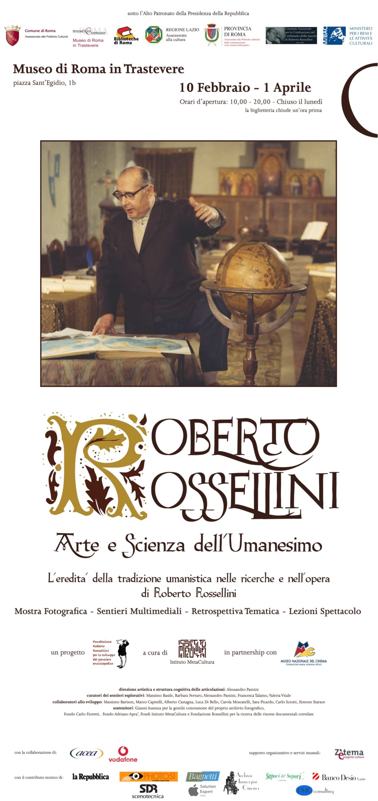 Questo progetto espositivo è nato in occasione delle “Celebrazioni per i 100 anni dalla nascita di Roberto Rossellini” curate dal nostro stesso Istituto insieme alla “Fondazione Roberto Rossellini per lo Sviluppo del Pensiero Enciclopedico”. La Mostra, come le altre iniziative, era stata pensata per far conoscere il Progetto Umanistico Rosselliniano e trovare Partner per portarlo a termine, cioè per realizzare gli strumenti educativi e formativi che lo stesso Rossellini aveva in mente di creare.