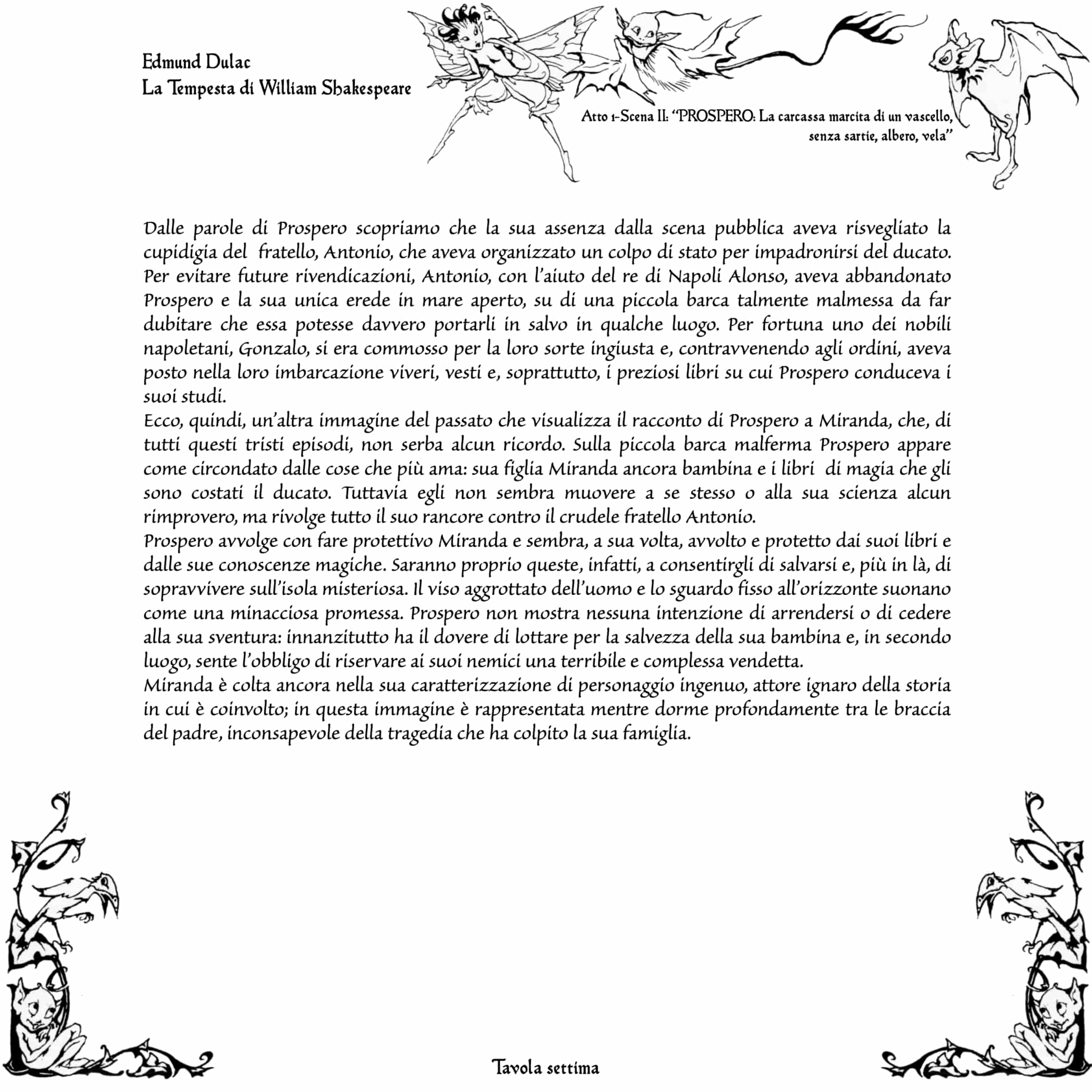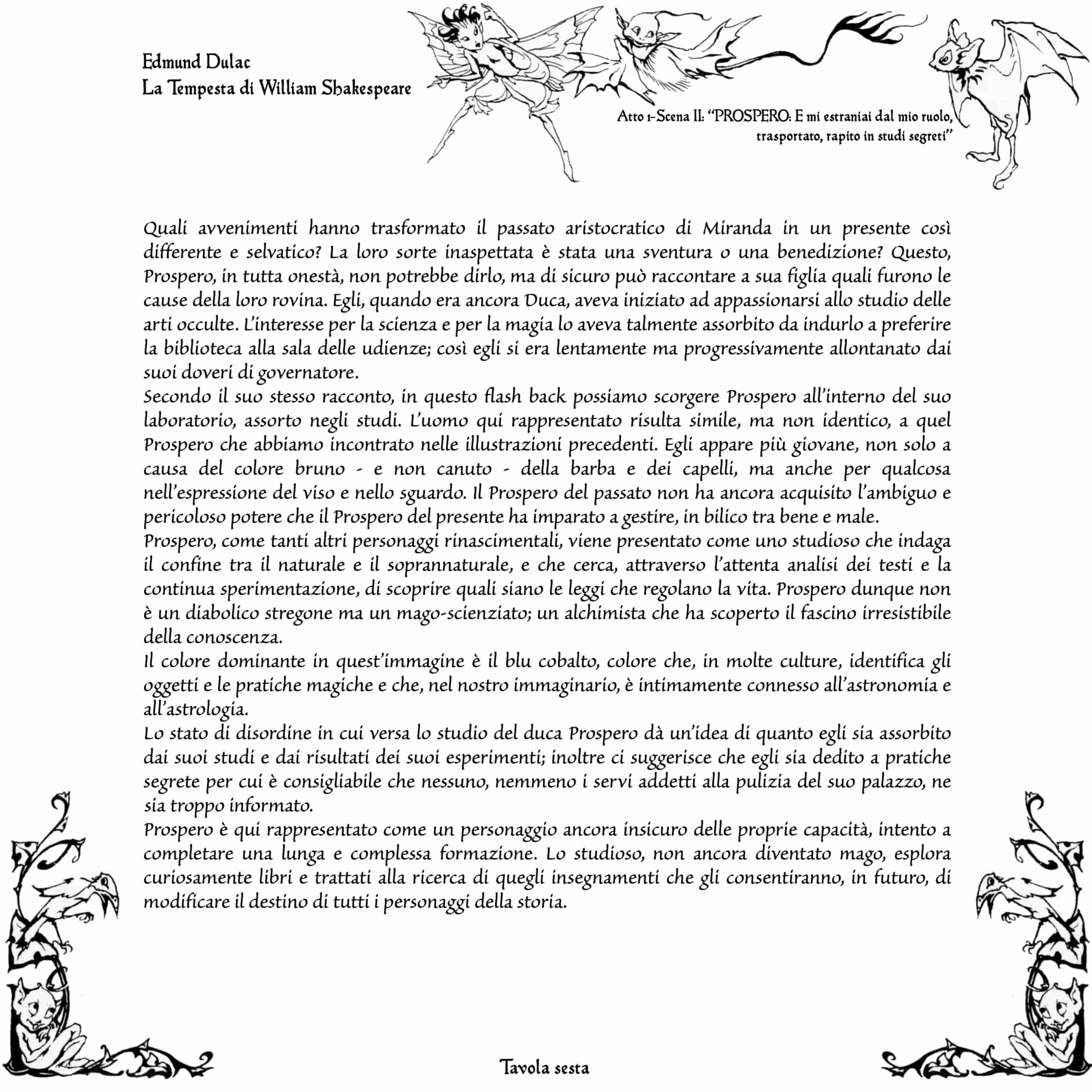 ed esterne al labirinto narrativo creato da Shakespeare per The Tempest. Il percorso doveva invitare i visitatori a osservare le immagini per inseguire e comprendere le numerose svolte narrative dell’intreccio, esplicitando tanto le soluzioni shakespeariane quanto quelle dei due grandi pittori, sollecitando una riflessione sulle regole del gioco narrativo e compositivo elaborato dagli autori, e facendo venir voglia di scoprire con quali soluzioni letterarie lo stesso Shakespeare aveva preparato il lavoro drammaturgico di coloro che avrebbero messo in scena il suo racconto.