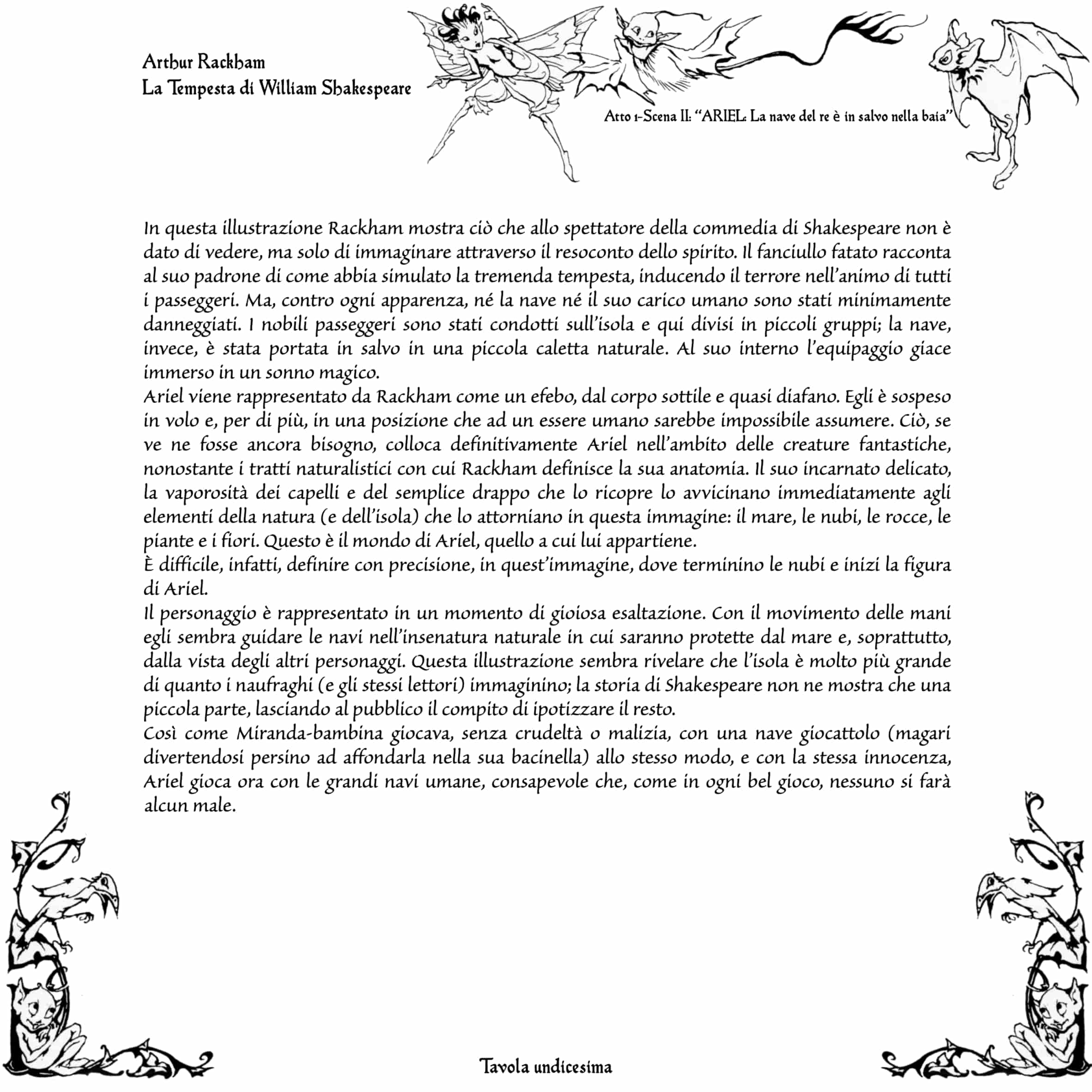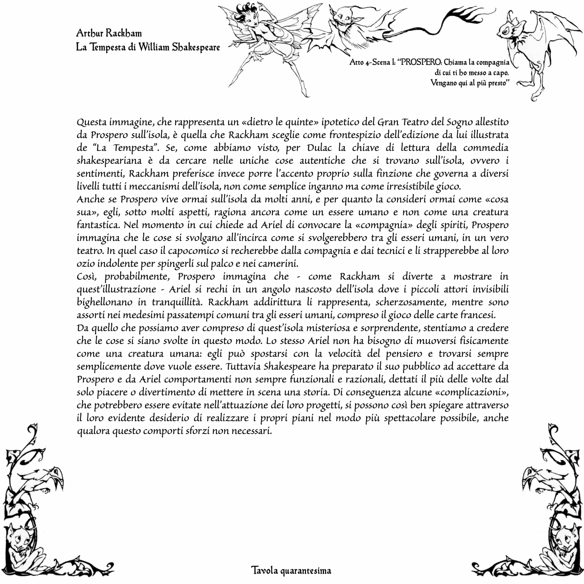 Arthur Rackham, che con i suoi meravigliosi dipinti era stato capace di arricchire persino i capolavori narrativi già perfetti creati dai più abili narratori per fanciulli di ogni età, era diventato da tempo un nostro prezioso compagno di viaggio, avendo trasformato in immagini le immaginazioni di autori come Barrie, Wagner, e lo stesso Shakespeare.
