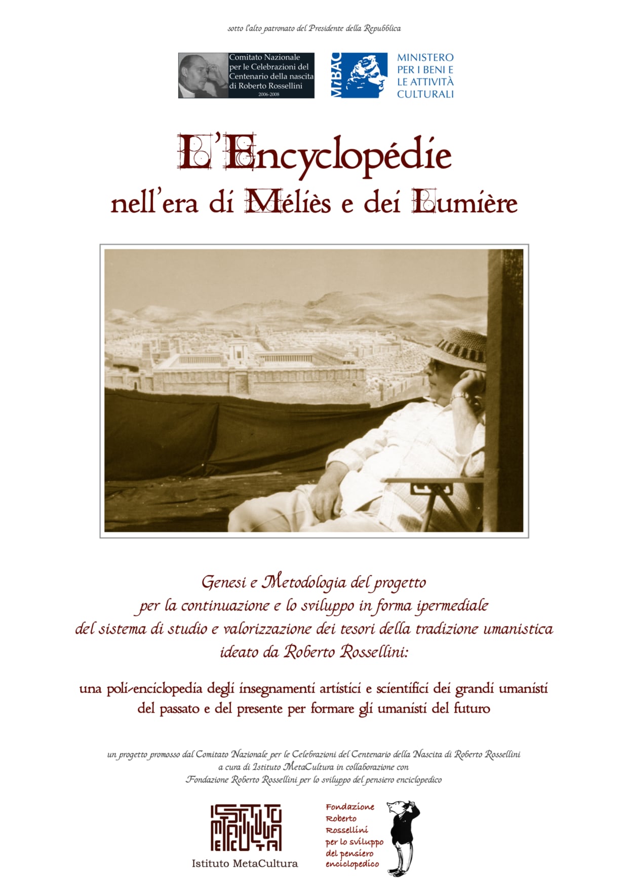 metadocumenti prodotti dallo stesso Rossellini per concatenarli con la sua narrazione, e dai meta-iper-documenti creati da noi stessi per insegnare a tutti gli interessati come usare e come eventualmente espandere il reticolo da noi creato per rappresentare e sviluppare il piano polienciclopedico ideato da Rossellini.