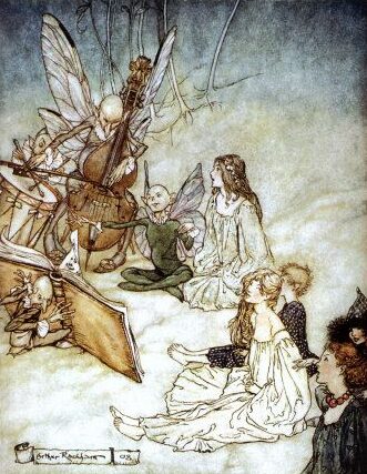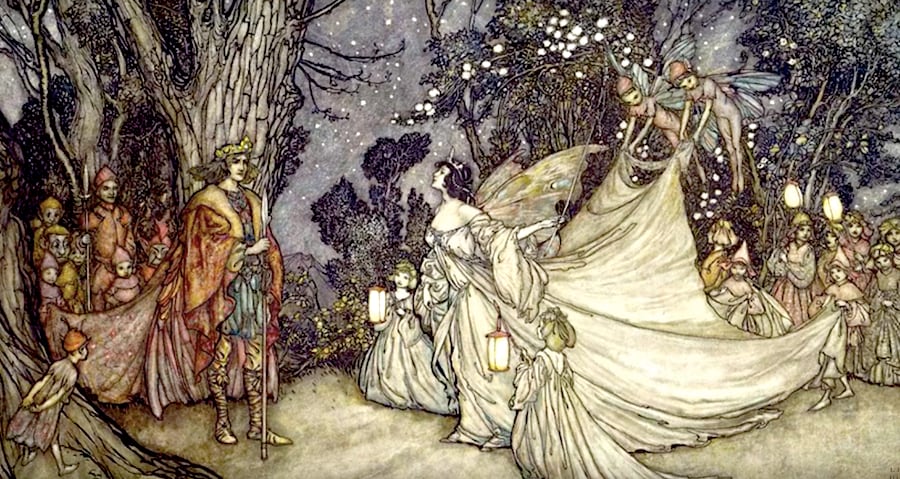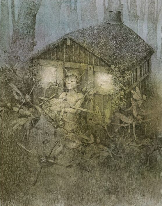 Peter (le cui abitudini, che Barrie esplora e rappresenta con Arthur Rackham nel suo Peter Pan in Kensington Gardens, sono le stesse che Rackham studia e rappresenta, come un antropologo-entomologo, illustrando A Midsummer Night’s Dream e The Tempest di Shakespeare); e poi ancora le storie della regina delle fate, per cui lavora che Peter Pan, come l’orchestra, nei Giardini di Kensington, la quale attraversa l’opera shakespeariana con il nome di Mab o di Titania, da Romeo and Juliet a A Midsummer Night’s Dream); e infine le storie dello stesso folletto Peter che, sotto altro nome (Puck), vive e rivive sia nei racconti di Kipling a lui dedicati (Puck of Pook’s Hill; Rewards and Fairies), sia nella commedia shakespeariana A Midsummer Night’s Dream dove