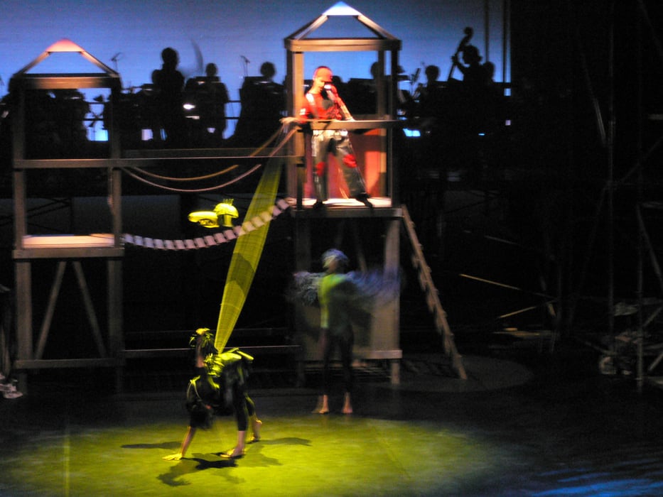 La prassi esecutiva di tale lavoro (che in Italia annoverò, tra i ‘Narratori’, attori del calibro di Ruggero Ruggeri, Sergio Tofano, Eduardo De Filippo, Tino Carraro, Polo Poli) ci abituò così a farcene un’idea come di un’opera sì preziosa e per certi versi unica, ma irrimediabilmente ‘monomediale’ e quasi “radiodrammatica’, viziata da uno schema formale troppo rigido e ancora, adottandone traduzioni “letterali”, da un testo verbale poco flessibile: paradossalmente “una noia”, come dichiarò schiettamente (e alquanto scoraggiato!) Lorenzo Arruga, pur con la sua abilità e competenza applicata alla stesura di libretti e adattamenti. E coerentemente con codesta visione, la “via di uscita” esecutiva, teatrale o meno, che egli sapeva indicarci consisteva nell’indispensabile ricorso a grandi “personaggi” (attori, cantanti, mattatori… come Sean Connery, Boris Karloff, Sting etc. cui affidare il ruolo-chiave di ‘conta/canta-storie’, in grado di calamitare l’attenzione con il loro istrionismo inventivo e la loro abilità improvvisatoria.
