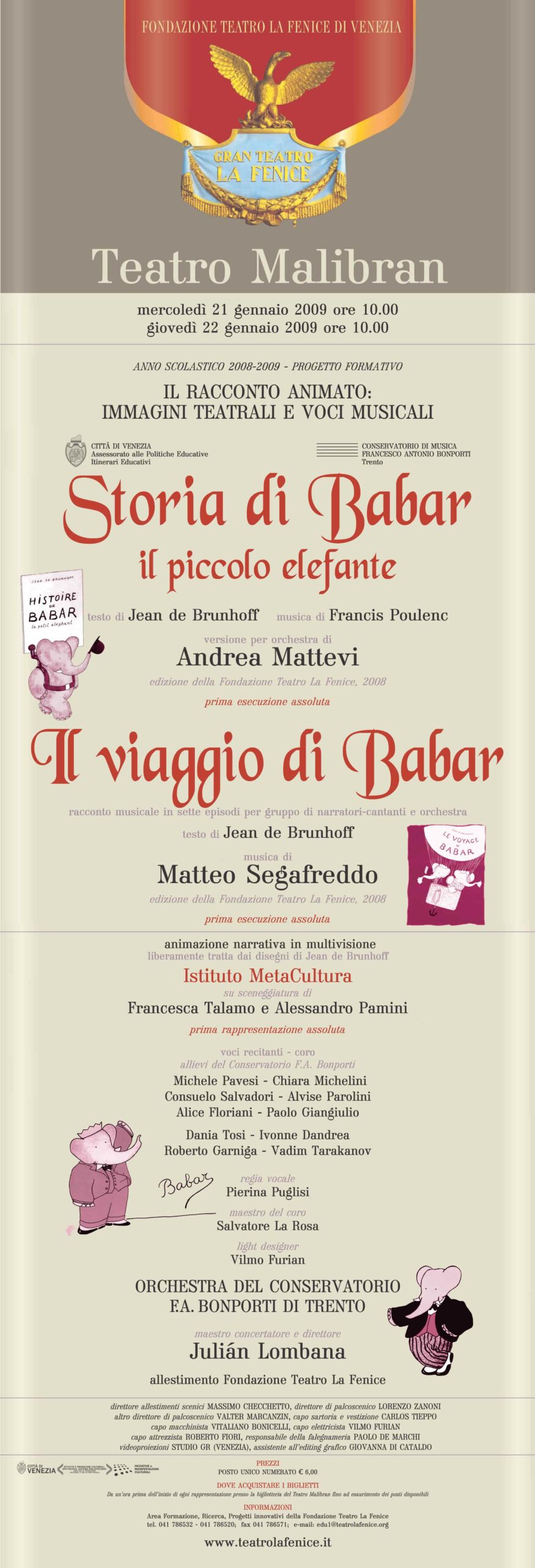 Una nuova orchestrazione dell’ L’Histoire de Babar, le petit éléphant (composta da Francis Poulenc e con il testo letterario di Jean De Brunhoff), ripensata per piccola orchestra e voci recitanti, ci ha consentito di preparare contemporaneamente un video virtuale, fatto di centinaia di frammenti animati da montare dal vivo, sincronizzandoli insieme alla direzione orchestrale.